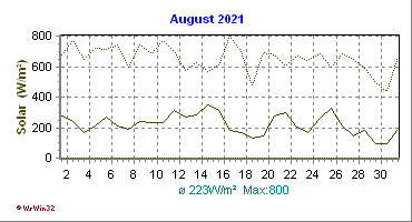 Monatsdiagramm August 2021 Die Kurven zeigen den Durchschnittswert des jeweiligen Tages an |