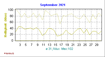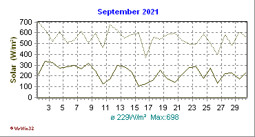 Monatsdiagramm September 2021 Die Kurven zeigen den Durchschnittswert des jeweiligen Tages an |