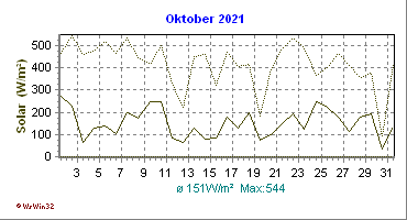 Monatsdiagramm Oktober 2021 Die Kurven zeigen den Durchschnittswert des jeweiligen Tages an |