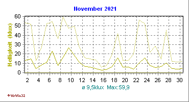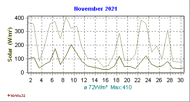 Monatsdiagramm November 2021 Die Kurven zeigen den Durchschnittswert des jeweiligen Tages an |