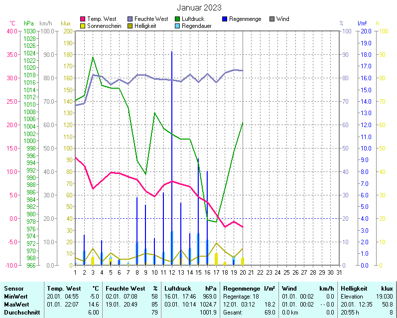 Wetter-Monatsübersicht Januar 2023 | ||||||||||||||||||||||||||||