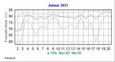 Monatsdiagramm Januar 2023 Die Kurven zeigen den Durchschnittswert des jeweiligen Tages an |